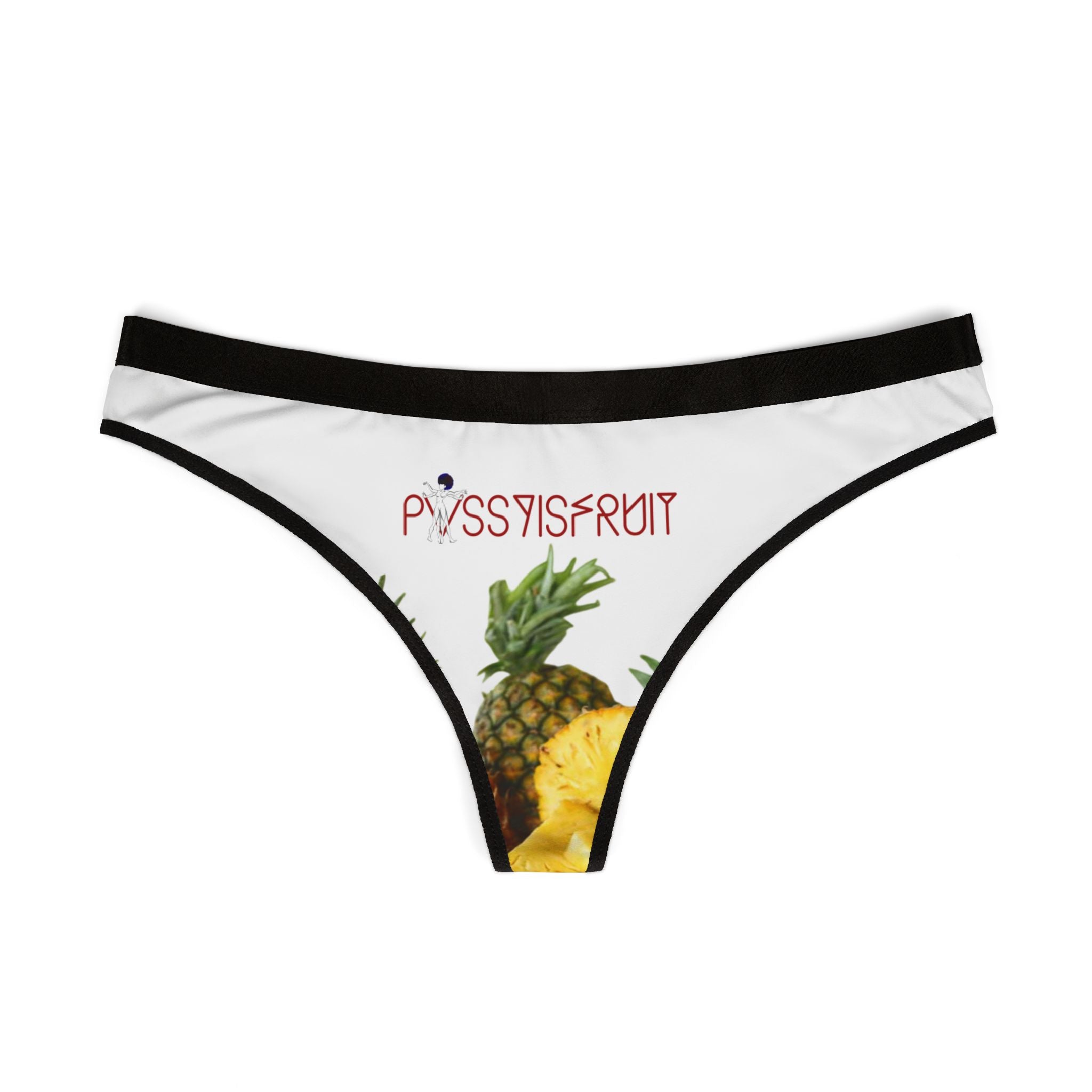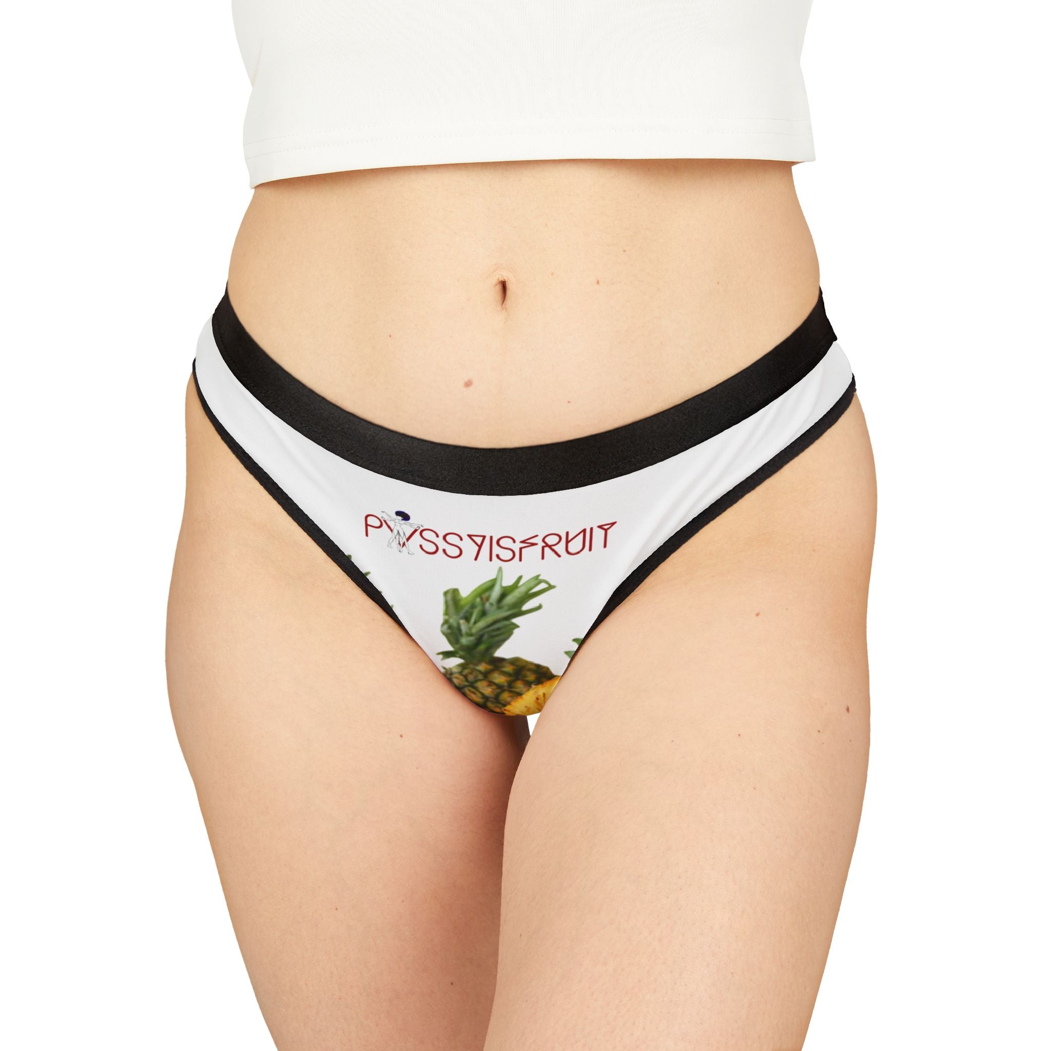 Tasty Pineapples, white with black trim for bold contrast. Minimal coverage, maximum confidence. Perfect for special nights or just feeling yourself.